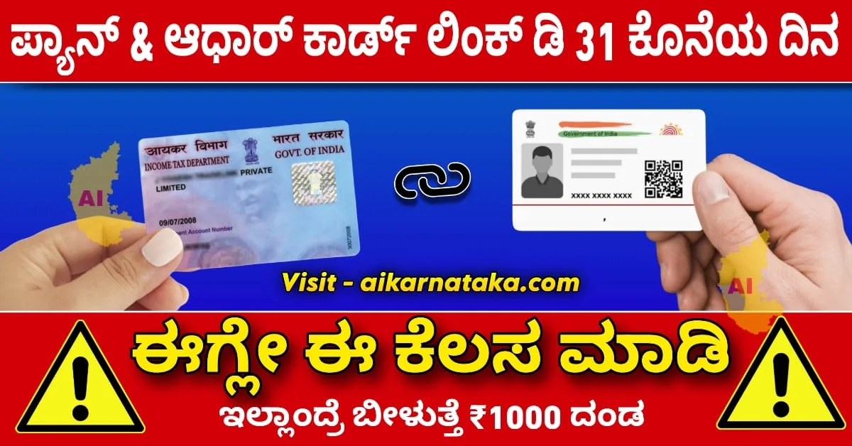 ಪ್ಯಾನ್ ಕಾರ್ಡ್ ಮತ್ತು ಆಧಾರ್ ಲಿಂಕ್ ಮಾಡಲು ಅಂತಿಮ ಗಡುವು ಪ್ರಕಟ! ಡಿಸೆಂಬರ್ 31 ರೊಳಗೆ ಮಾಡದಿದ್ದರೆ ನಿಮ್ಮ ಪ್ಯಾನ್…..